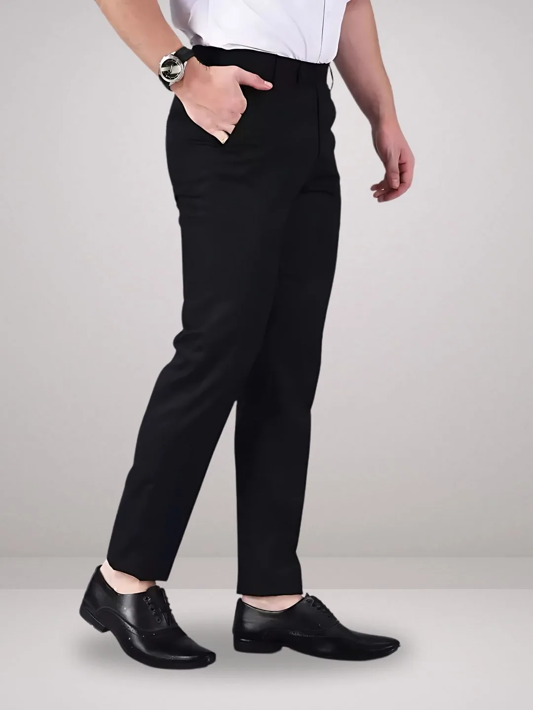 Step up your formal attire with the Zee Gold Everyday Comfort Formal Trousers. Crafted from a premium, smooth-finish fabric designed for all-day ease, these trousers deliver a refined look while ensuring lasting comfort and flexibility. Featuring a solid pattern and a clean flat-front design, they pair effortlessly with any formal ensemble, making them a reliable and versatile wardrobe essential. Elevate your style and make a confident statement with every step.