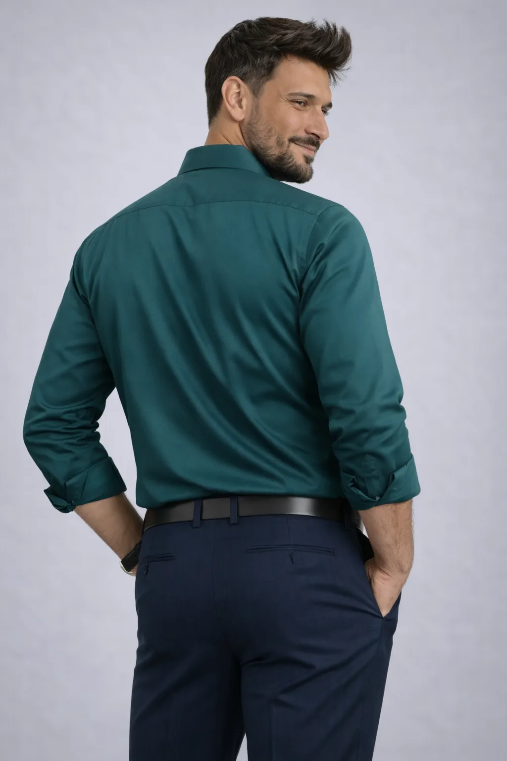 A refined staple with a touch of lustre, this shirt lends effortless polish to smart-casual edits. Designed with a crisp collar, full sleeves with cuffs, its smooth sateen weave offers a soft hand feel and subtle sheen. Finished in a contemporary fit and a front patch pocket for understated detail.