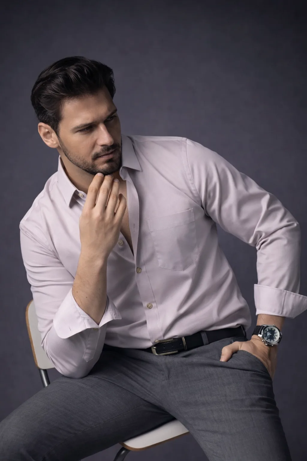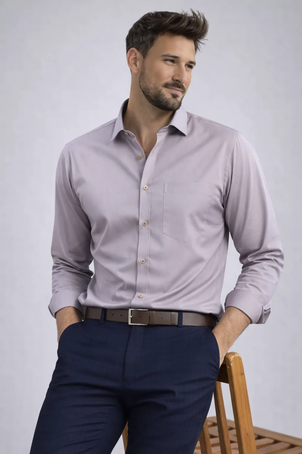 A refined staple with a touch of lustre, this shirt lends effortless polish to smart-casual edits. Designed with a crisp collar, full sleeves with cuffs, its smooth sateen weave offers a soft hand feel and subtle sheen. Finished in a contemporary fit and a front patch pocket for understated detail.