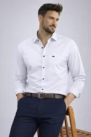 A refined staple with a touch of lustre, this shirt lends effortless polish to smart-casual edits. Designed with a crisp collar, full sleeves with cuffs, its smooth sateen weave offers a soft hand feel and subtle sheen. Finished in a contemporary fit and a front patch pocket for understated detail.
